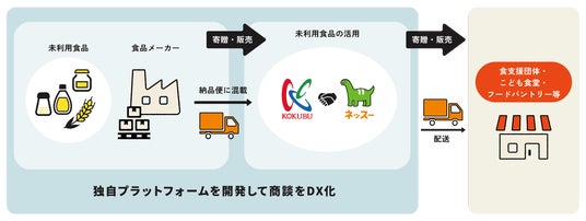こどもの機会格差の解消を目指すネッスー株式会社(本社:東京都世田谷区、代表取締役:木戸優起、以下 ネッスー)は、食品卸売大手の国分グループ本社株式会社と連携し、食品メーカー・卸・小売・外食など(以下「食品関連企業」)が抱える「未利用食品(賞味期限切迫や規格外品など)」を、食品関連企業の業務・物流負担を抑えながら、地域のこども食堂など、支援が必要な世帯・団体へ届けるあたらしい仕組みを構築しました。